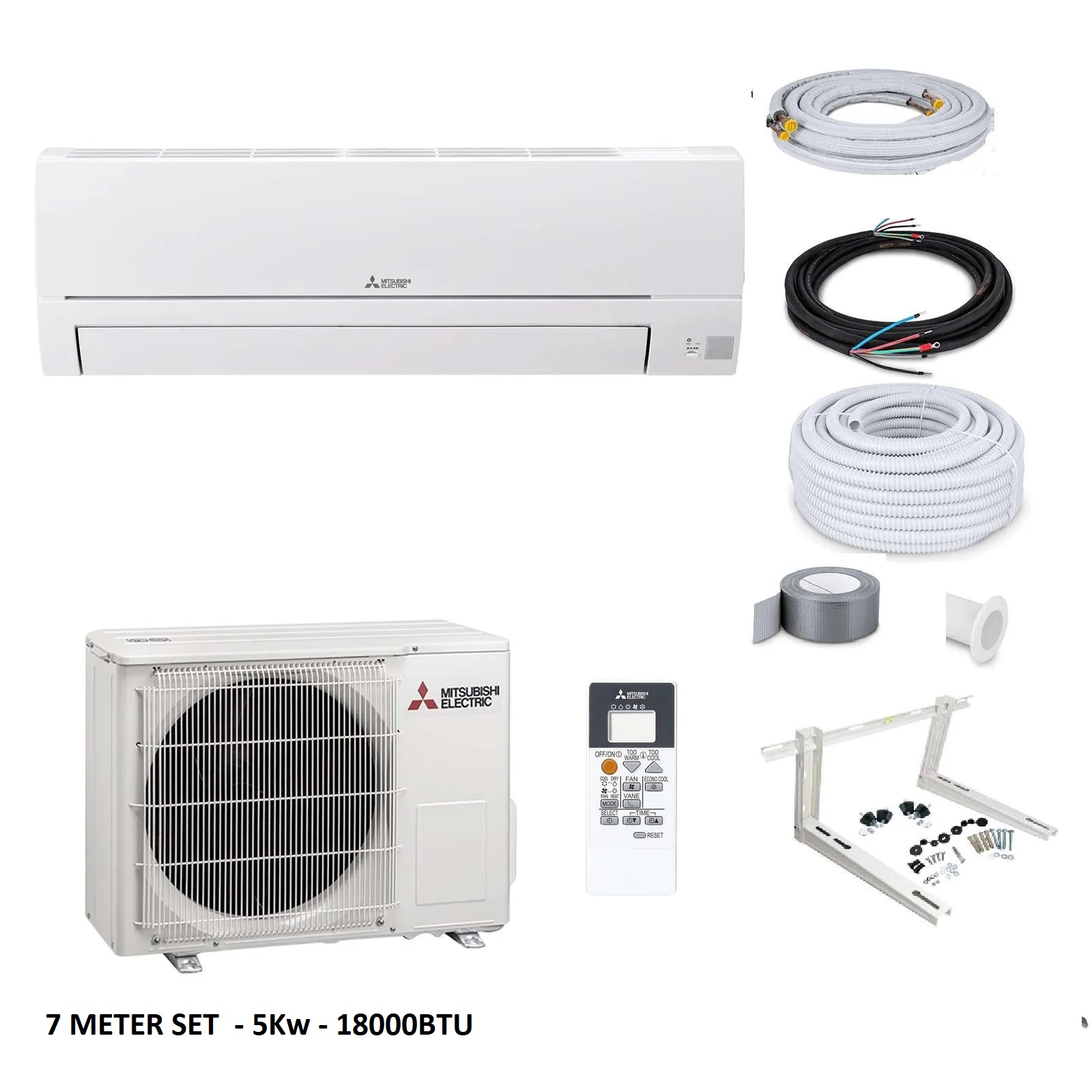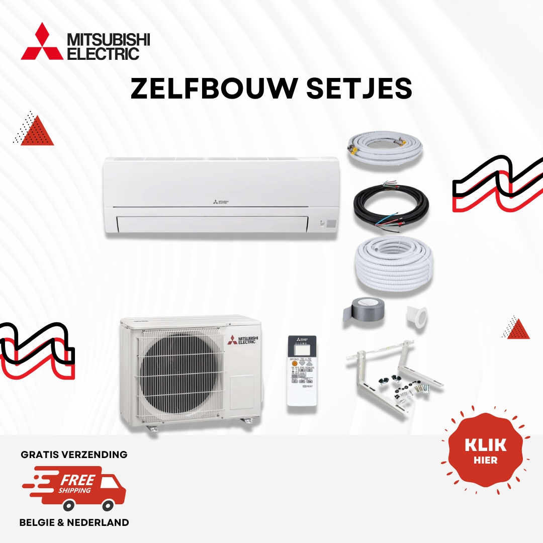 Mitsubishi airco 5kW, 7m zelfinstallatie set met WiFi. Gratis WiFi module! Koelt en verwarmt tot 150m³. A++/A+ energielabel. 2 jaar garantie. Direct leverbaar.